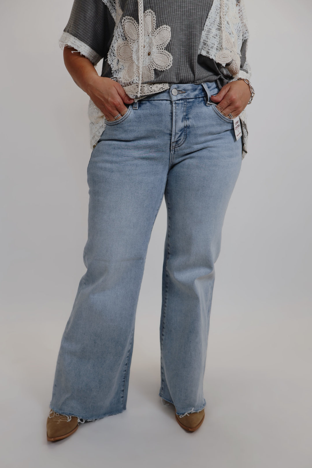 El corte ancho de la pierna le da un toque vintage, mientras que el bajo sin rematar le da un toque fresco e informal. Confeccionada con una mezcla suave y elástica de algodón, poliéster y elastano, la Andrea se mueve contigo y mantiene su forma durante todo el día.