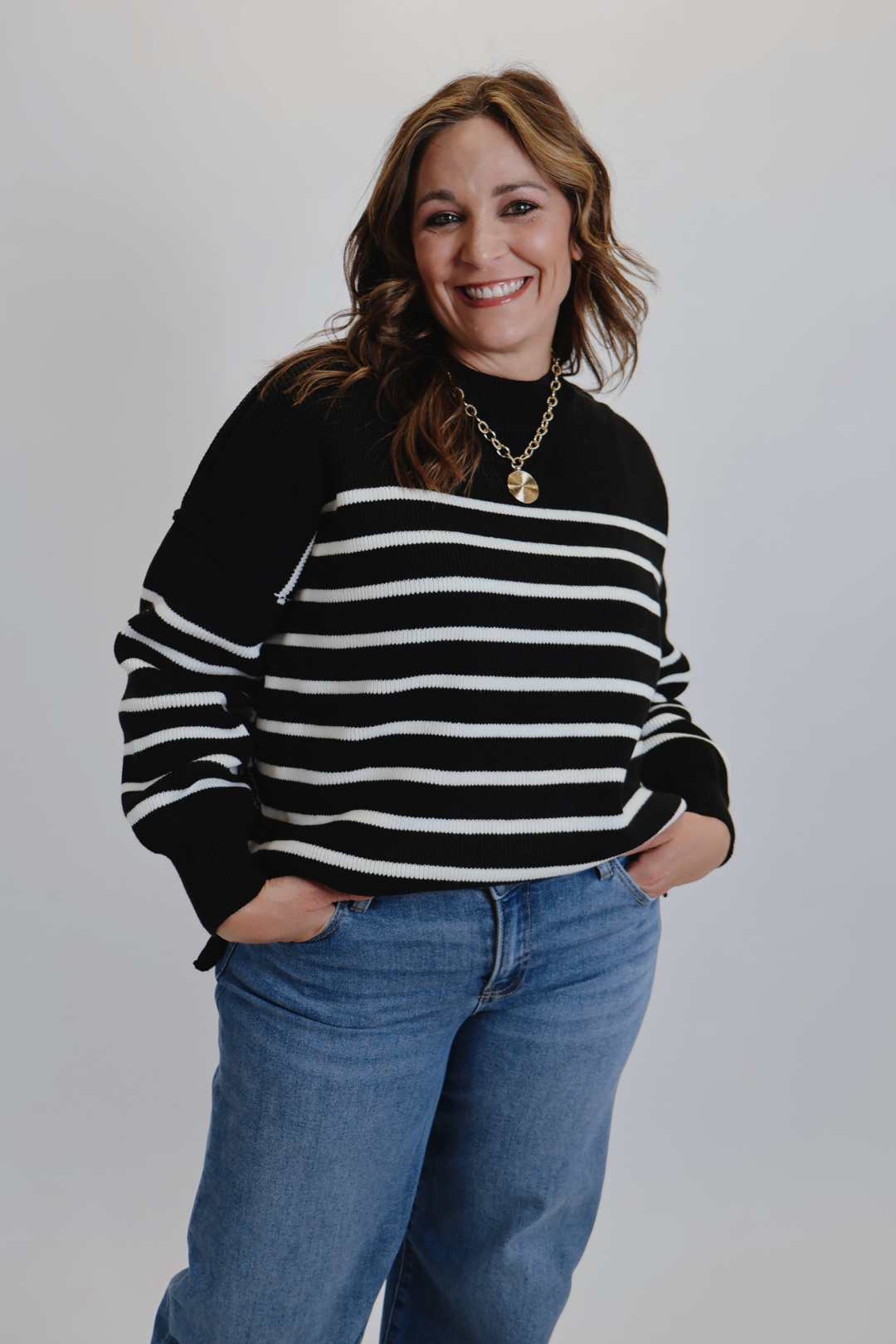 Elegante, acogedor y con un estilo moderno y natural, el suéter de rayas City Stroll aporta un estilo atemporal a tu armario de diario. Diseñado con un corte holgado y relajado y costuras visibles, este suéter combina la comodidad informal con un toque moderno. Las llamativas rayas marfil sobre una base gris oscuro crean un look versátil que combina a la perfección con vaqueros, leggings o pantalones para cualquier salida informal.