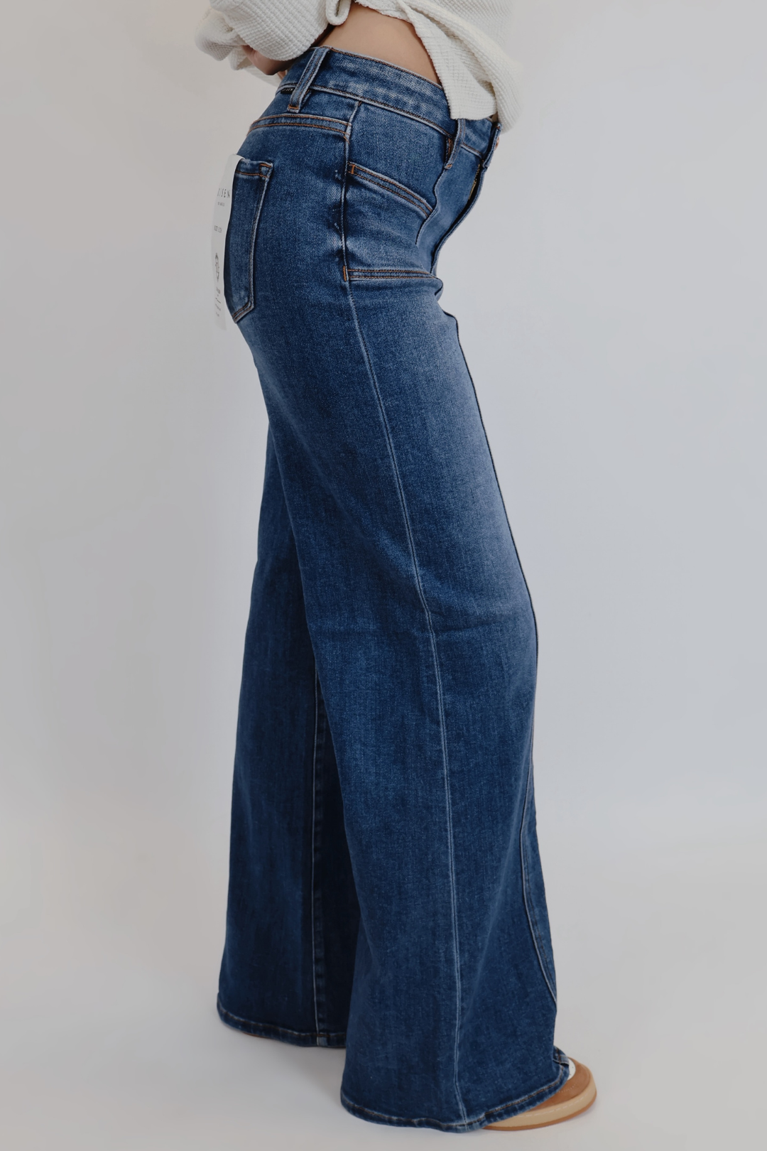 Atrae todas las miradas con nuestros jeans anchos de tiro medio, diseñados para la mujer moderna que adora una silueta atemporal con un toque atrevido. Estos jeans presentan una cintura media favorecedora y un corte ancho y audaz que se adapta a cada paso. ¿El detalle que destaca? Elegantes bolsillos de parche delanteros que añaden un sutil toque utilitario a la vez que realzan la estructura a medida.