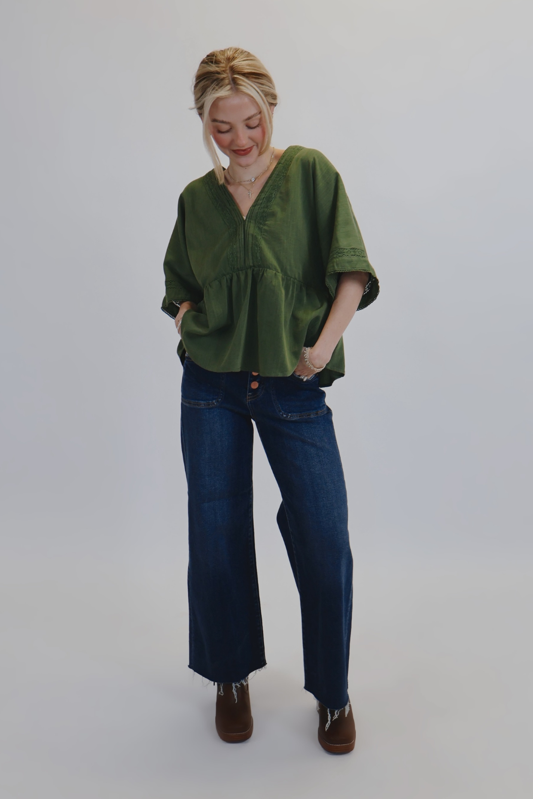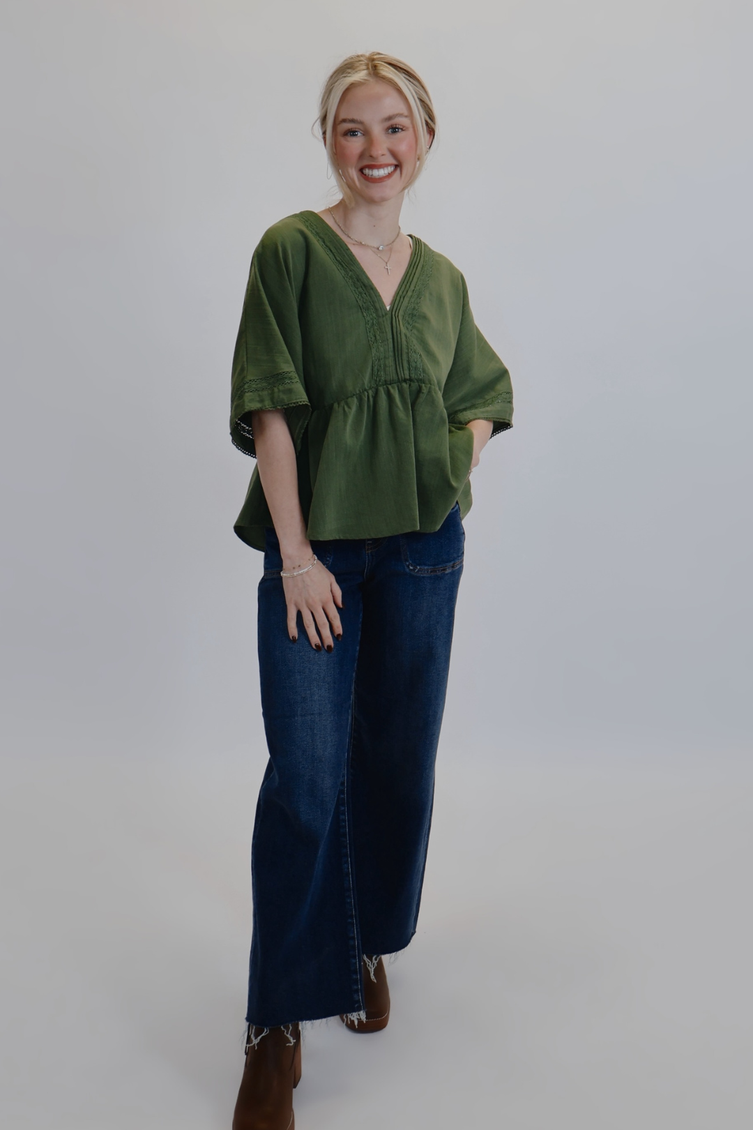 Suave, femenino y favorecedor, el top peplum de encaje susurrante aporta un encanto atemporal a tu look diario. Confeccionada en una mezcla ligera de tejido, esta blusa lisa de manga corta presenta un delicado ribete de encaje y detalles de pinzas que enmarcan el escote en V a la perfección. El dobladillo peplum fruncido aporta un toque de fluidez y forma, creando una silueta que combina a la perfección con tus vaqueros o pantalones de sastre favoritos.