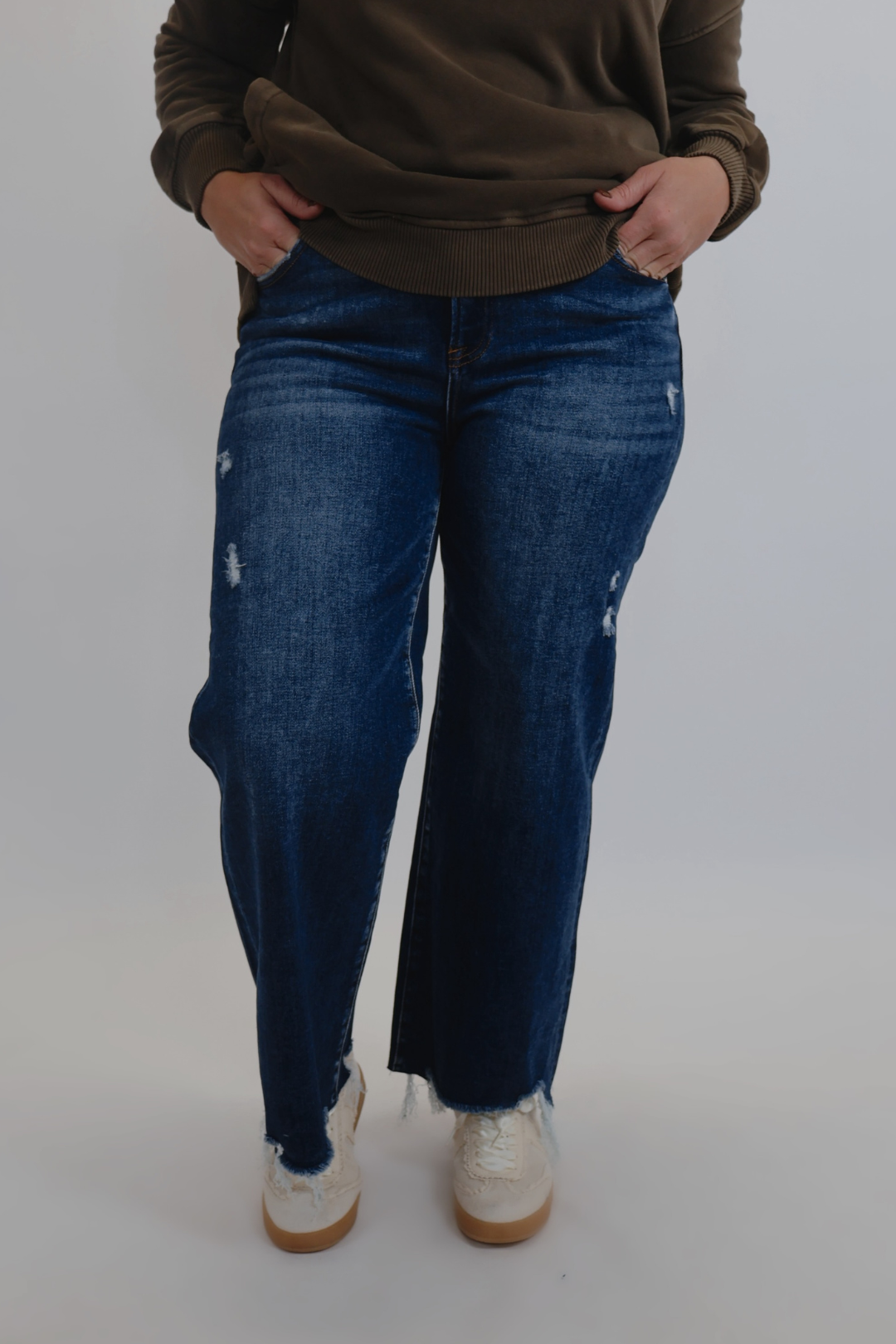 Los jeans Kaia Crop Wide Leg son la definición de una confianza relajada. Diseñados con un favorecedor tiro alto y una pierna ancha relajada, crean una silueta chic y relajada que funciona de día y de noche. El largo cropped permite lucir tus zapatos favoritos, mientras que el sutil efecto desgastado y el dobladillo sin rematar le dan un toque moderno.