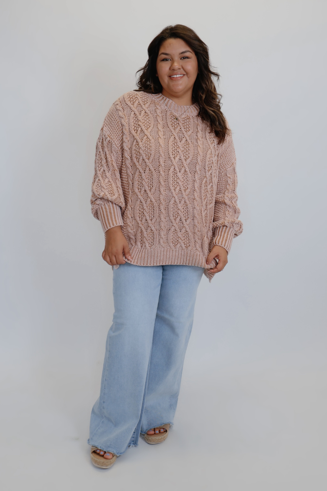 Envuélvete en calidez y encanto con el Suéter de punto trenzado Maple Grove. Esta belleza de punto grueso presenta costuras trenzadas clásicas y un corte holgado y extragrande que combina a la perfección con tus vaqueros o leggings favoritos. Ya sea que estés descansando junto a la chimenea o saliendo a tomar un café informal, este suéter te mantiene cómodo y elegante sin esfuerzo.