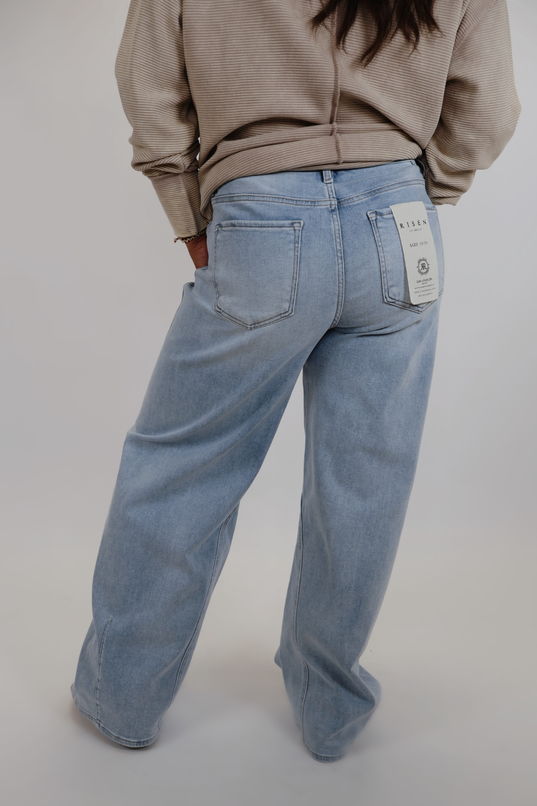 Luce un estilo desenfadado con nuestros jeans de tiro medio con un lavado claro y fresco. Diseñados con una cintura de tiro medio favorecedora y una moderna silueta de pierna barril, estos jeans ofrecen un ajuste relajado y estructurado, cómodo y a la moda. El exclusivo detalle de costura curva le da un toque contemporáneo, mientras que el denim suave y premium proporciona una gran durabilidad durante todo el día.
