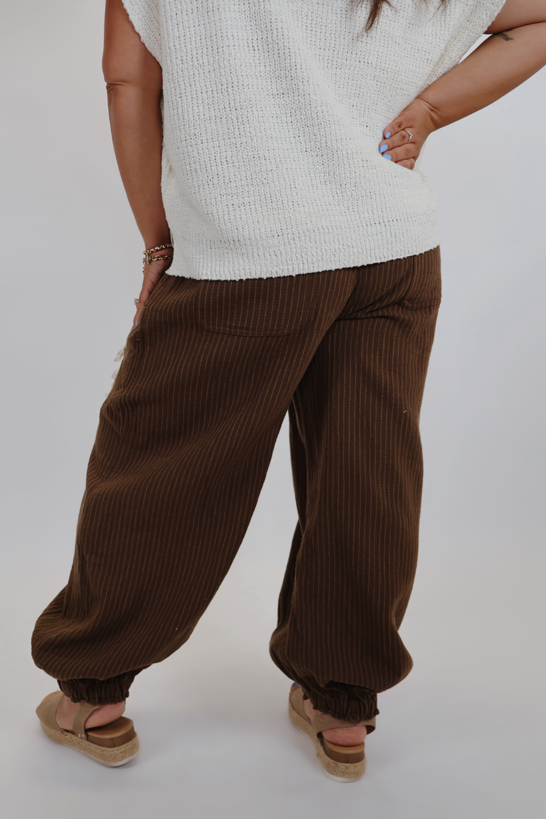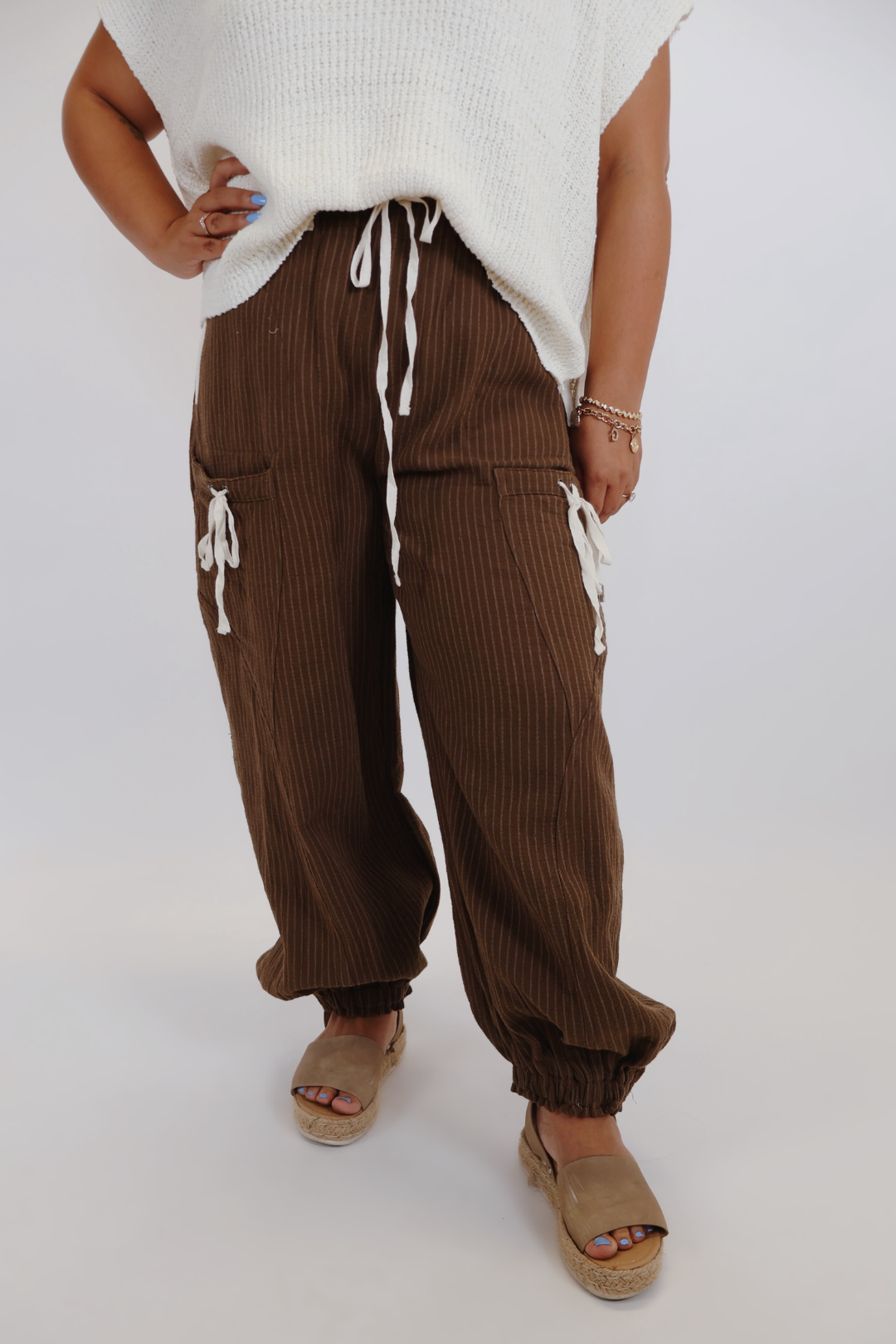 Descubre tu nueva prenda ideal para tu tiempo libre: los pantalones deportivos Urban Stripe con cordón. Diseñados pensando en la comodidad y la versatilidad, estos pantalones deportivos presentan una silueta relajada con sutiles rayas diplomáticas, bolsillos laterales de inspiración funcional y detalles de cordón en contraste que le dan un toque de estilo urbano y chic. La cintura elástica y los tobillos con puños ofrecen un ajuste seguro y favorecedor, perfecto para todo, desde hacer recados hasta relajarse el fin de semana.